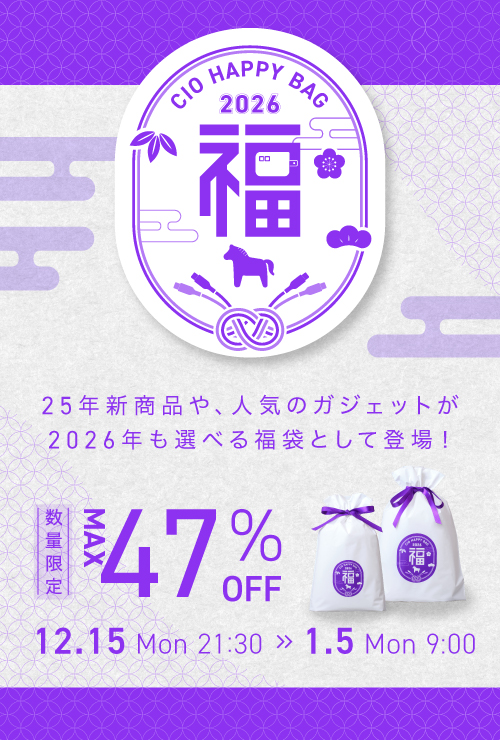 最大47%OFF!CIOの人気製品を厳選!「CIO 人気ガジェットが選べる福袋2026」を販売開始!限定パープルカラーも!