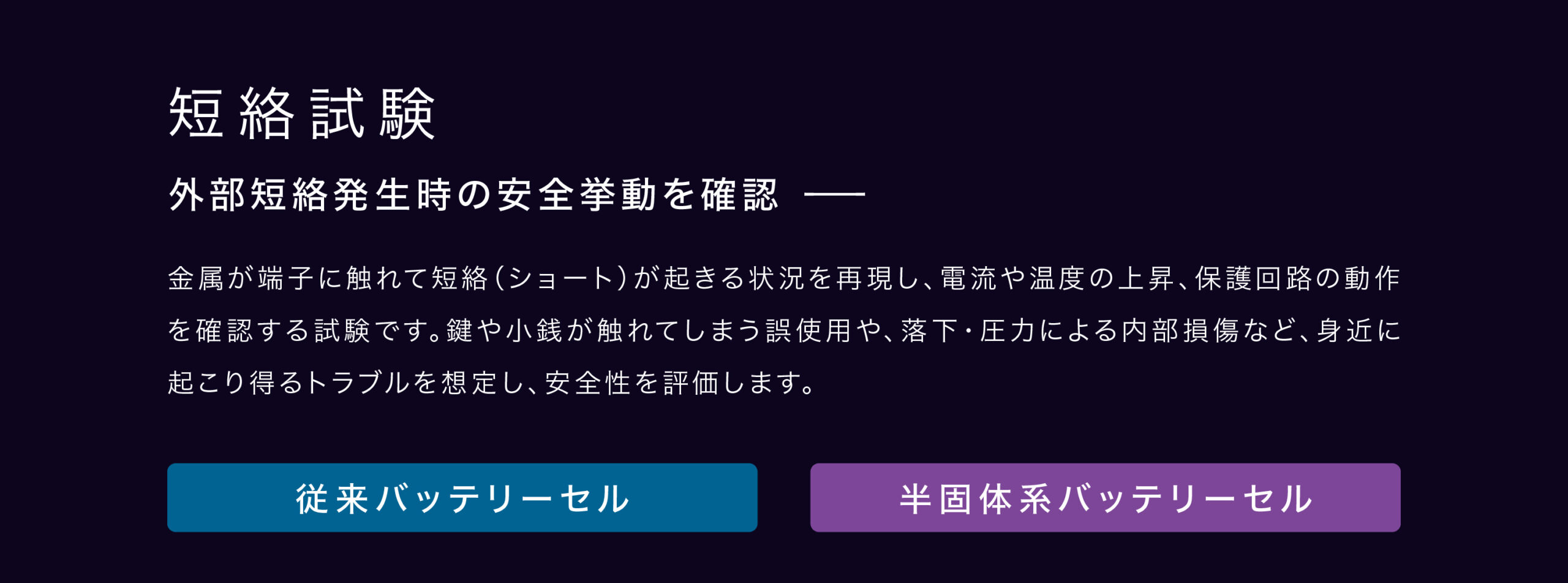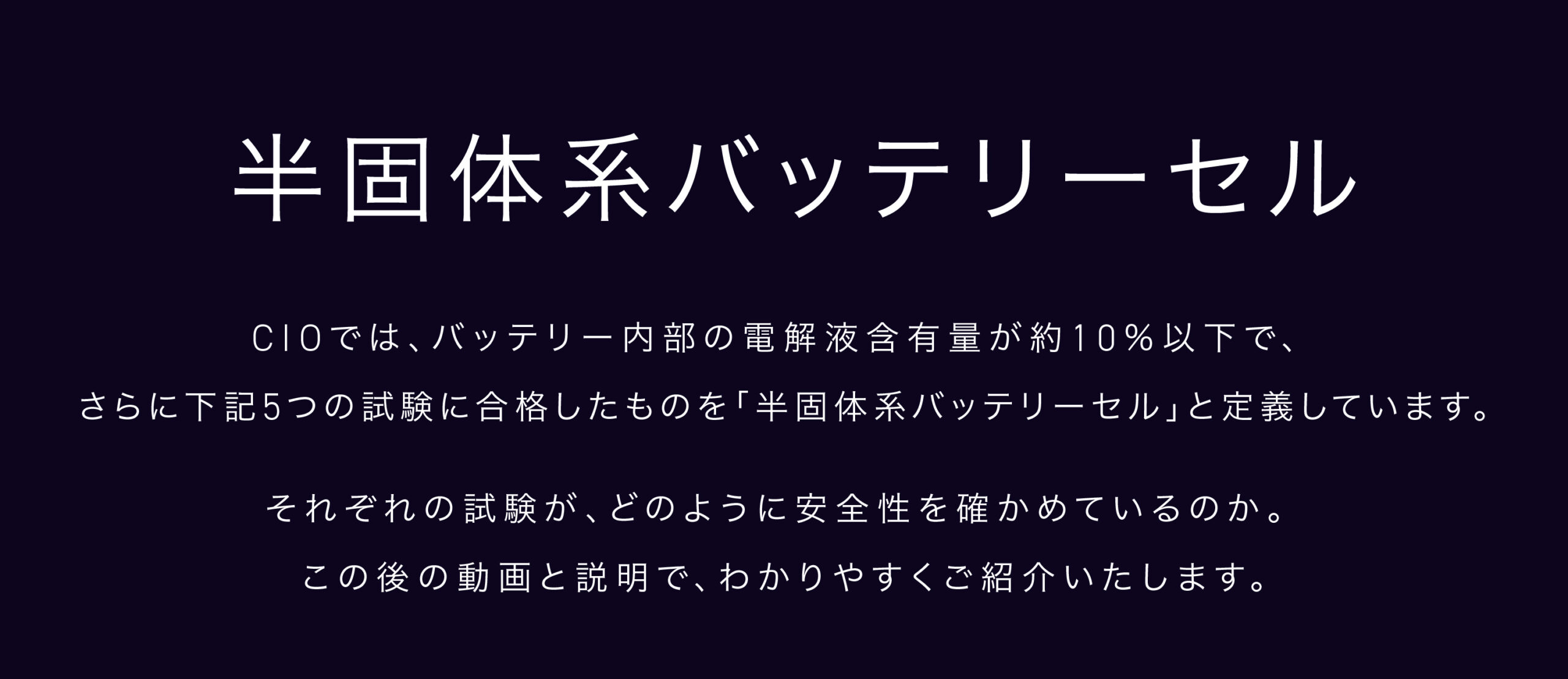 CIOでは「半固体系」という名称だけでなく、その仕様や性能を裏付けるための 試験条件や実測データ(温度・膨張・寿命など)を公開しています。