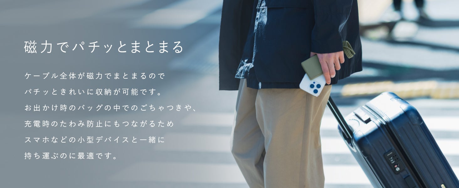 マグネットの力でケーブル自体が引き合うので、ケーブルバンドを使うことなく
