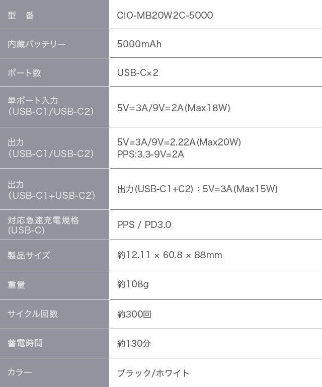 - 商品情報:「SMARTCOBY SLIM 5,000mAh」(CIO-MB20W2CE-5000)