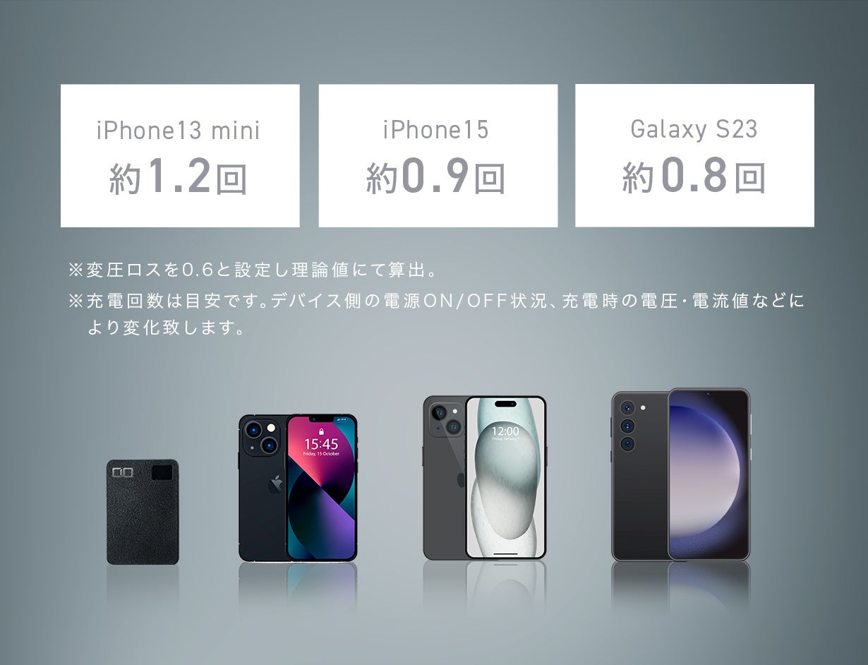 つまり多くのスマホの満充電ほぼ1回分という“ちょうどいい”容量です。