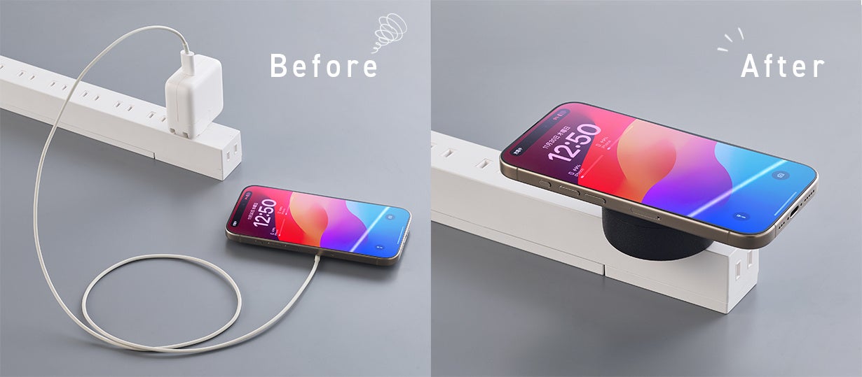 Qi2規格により可能になった、これまでのワイヤレス充電器の概念を覆す新しいカタチの充電器を提案します。