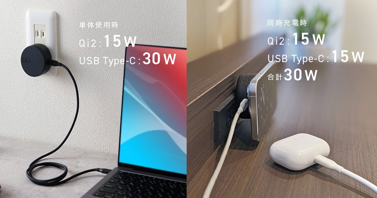 ※Qi2によるiPhone充電時は最大7.5W出力となります。