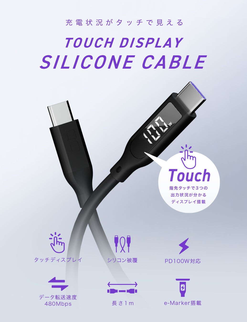 ・商品情報「タッチディスプレイシリコンケーブル 1m」(USB-C to C)