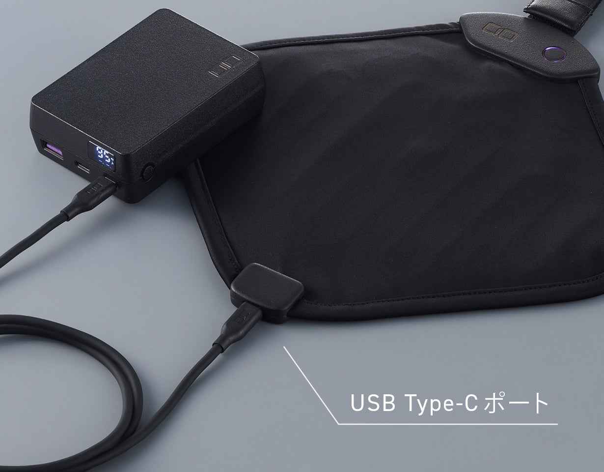 長時間ご使用になりたい場合は、本体下部のUSB Type-Cポートにお手持ちのケーブルを接続し、バッテリーをつなぐことも可能です。