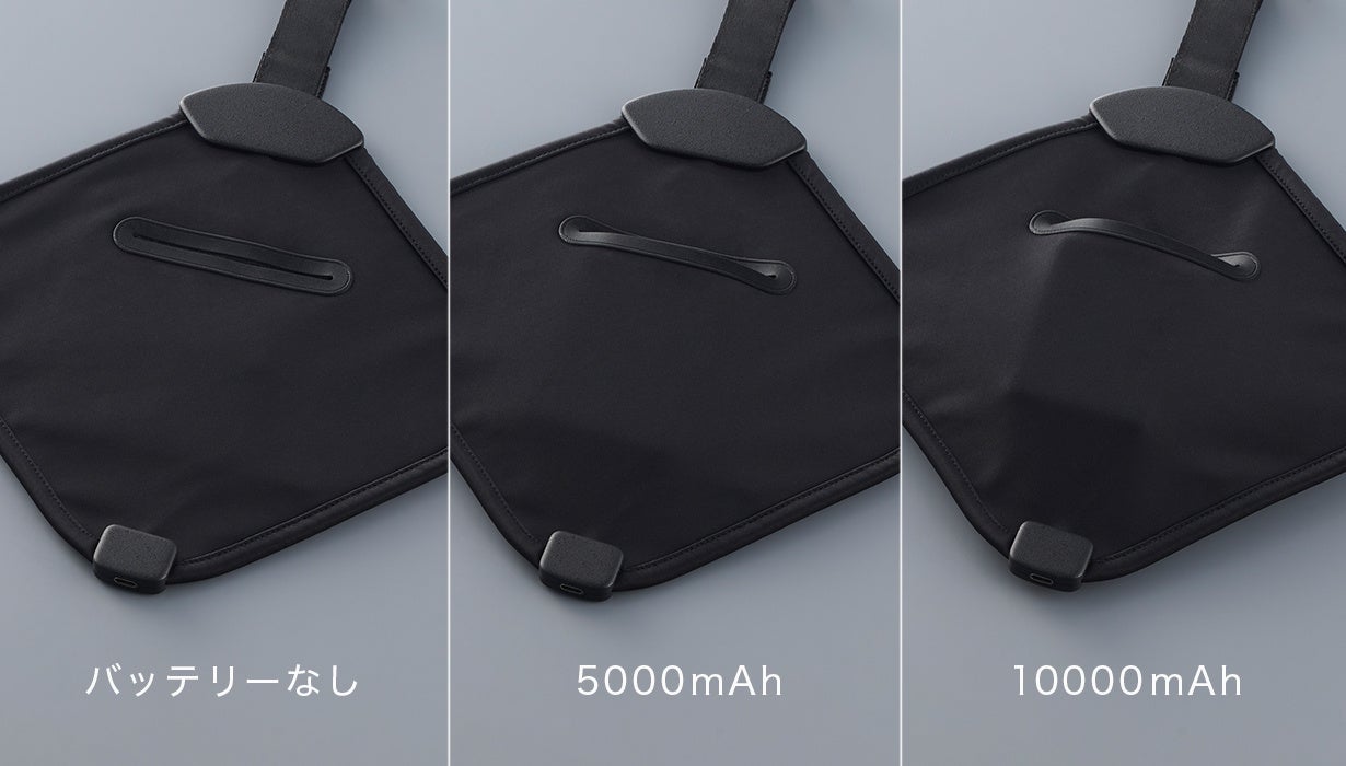 体積がコンパクトかつ薄型設計のため、かさばりがちなインナーベストと違い、ビジネスバックやサコッシュなど薄めのカバンでも楽々収納可能でスマート。