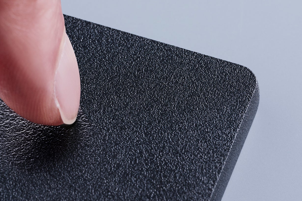 表面には一眼レフカメラのボディのようなシボ加工を施しており、細かな傷がつきにくく、ほとんど変わらない姿のままで長くご愛用いただけます。