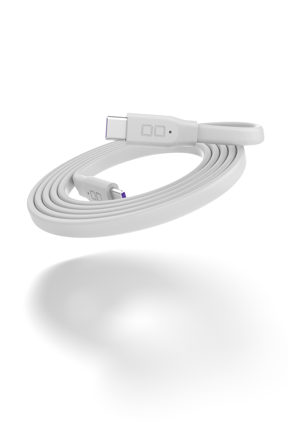 本製品は、長さ1mの薄型フラットケーブルをスパイラル状にまとめた、持ち運びやすさと使いやすさを両立するUSB Type-C to Cケーブルです。ケーブル内部に磁石を内蔵しており、使い終わった後は自然と渦巻き状にまとまり、バンド不要でコンパクトに収納可能。厚さ約7mmのフラット形状によりかさばりにくく、バッグやポーチのすき間にもすっきり収まります。