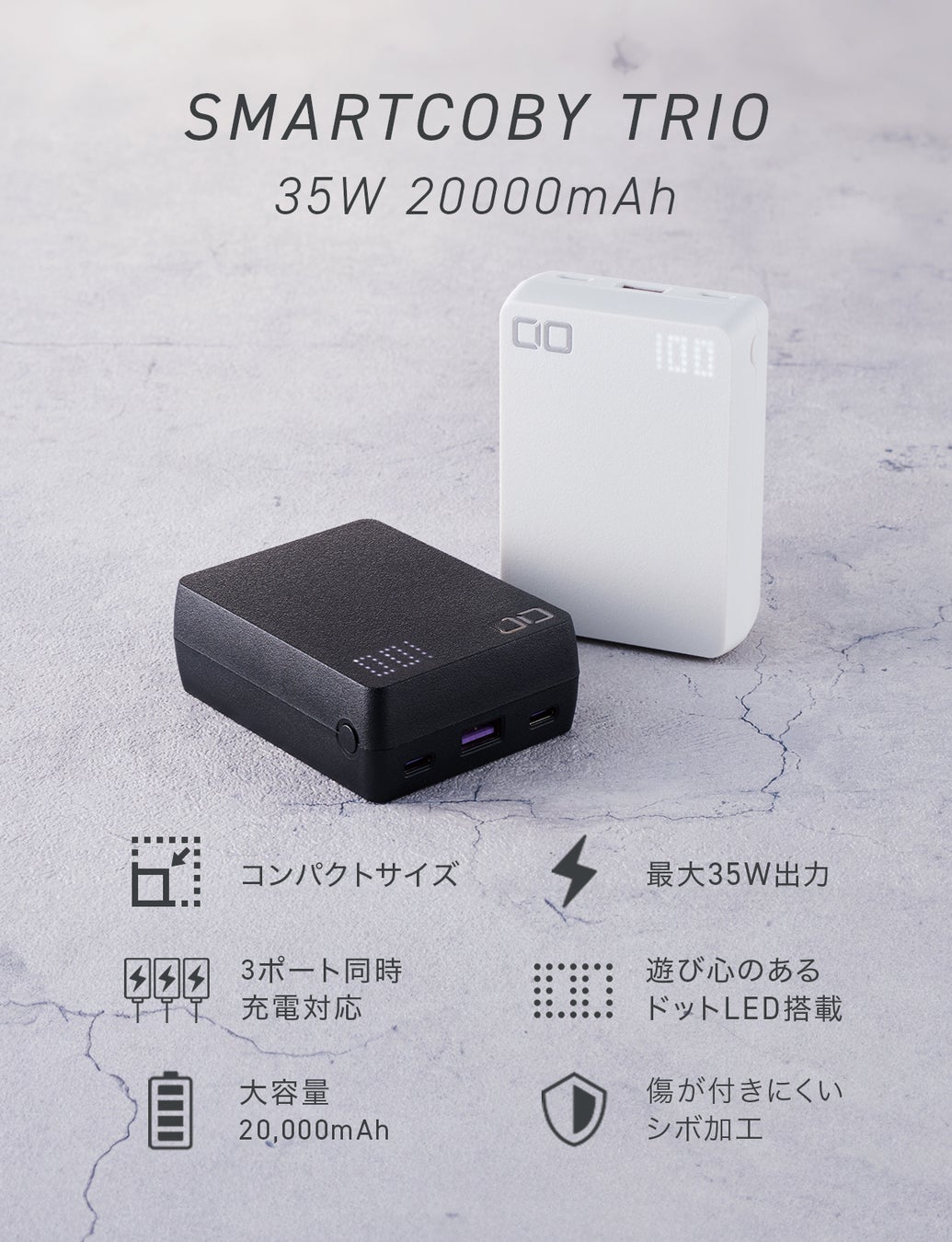 - 35W出力の高出力でちょうどいい20,000mAhの新定番「SMARTCOBY TRIO 35W」