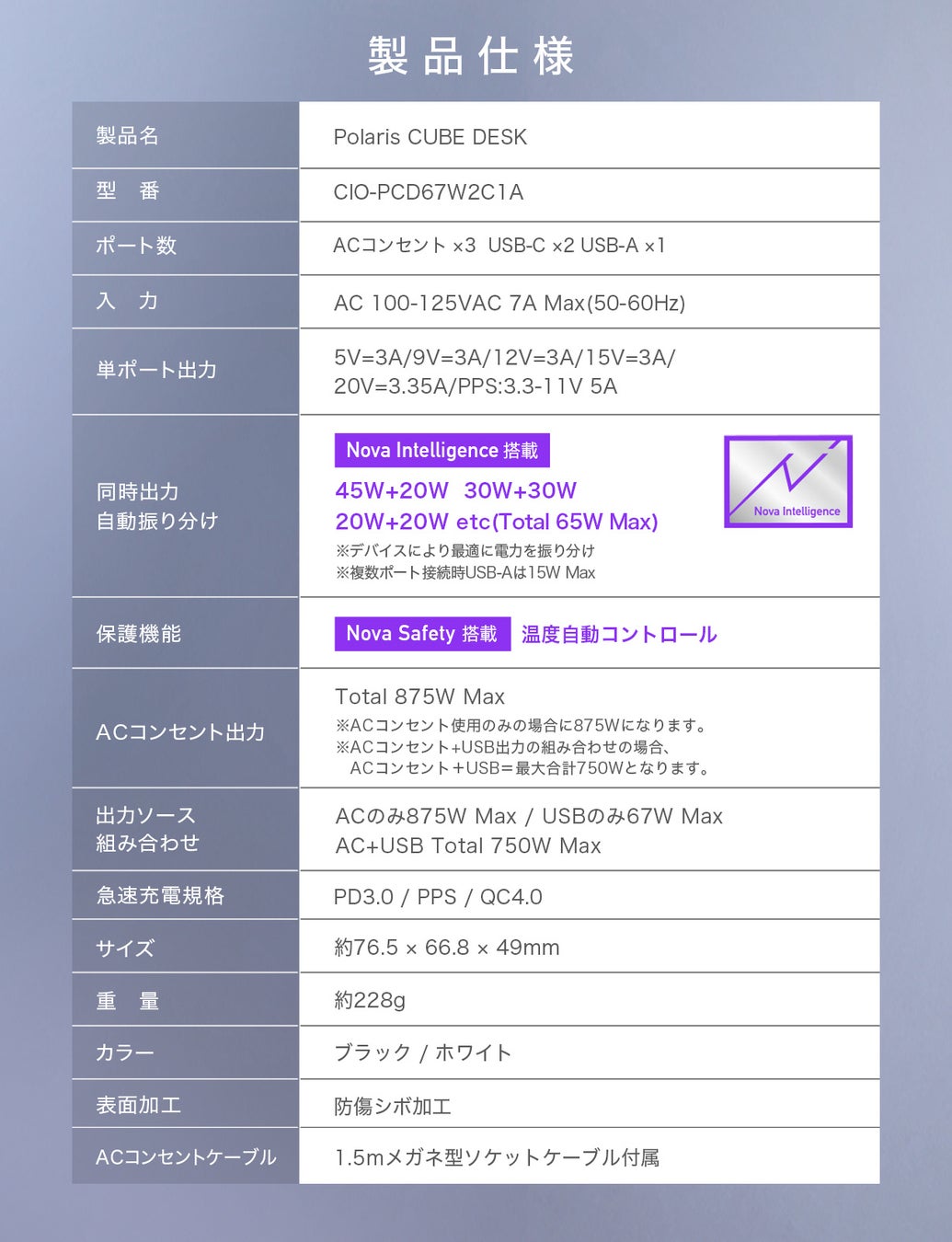 CIOの電源タップシリーズは皆様の生活の中心に存在してほしいという想いを込めて北極星から「Polaris」と名付けました。Polaris CUBEシリーズは電源タップという共通点がありながらも、それぞれ活躍するシーンや空間が異なります。Polarisシリーズ第3弾となる「Polaris CUBE DESK」はデスク周りで活躍する新しいPolarisとして誕生しました。
