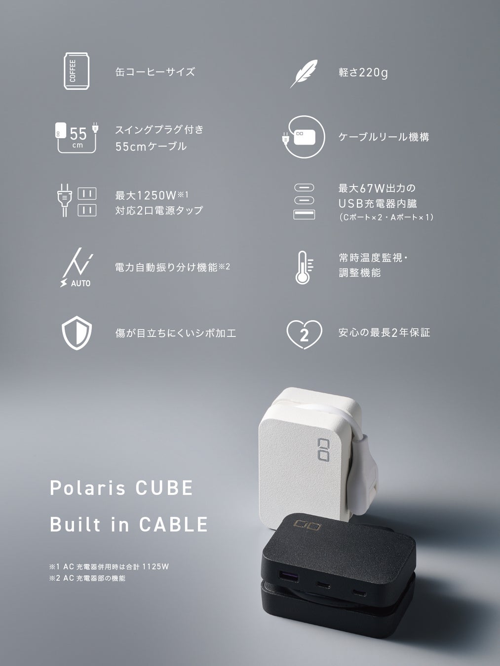 - ”Polaris CUBE Built in Cable”特徴