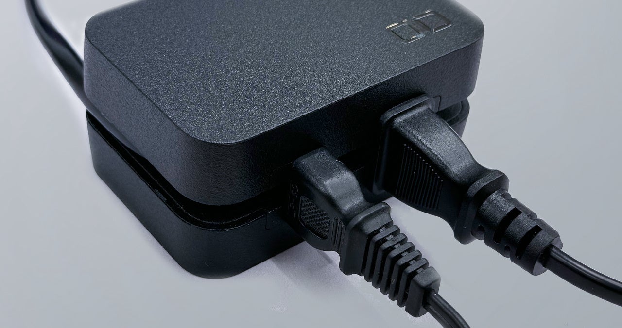 電源ケーブルは長いほど安心感を覚えますが、確実に重く、大きく、片付けにくくなります。CIOでは旅行・出張時の多くのシーンで活躍するベストバランスを検討。携帯性や使用シーン、収納のしやすさから55cmの電源ケーブルとプラグの角度を変えられるスイングプラグを組み合わせ、ケーブルリール機構に収める組み合せが最適解だという結論に至りました。
