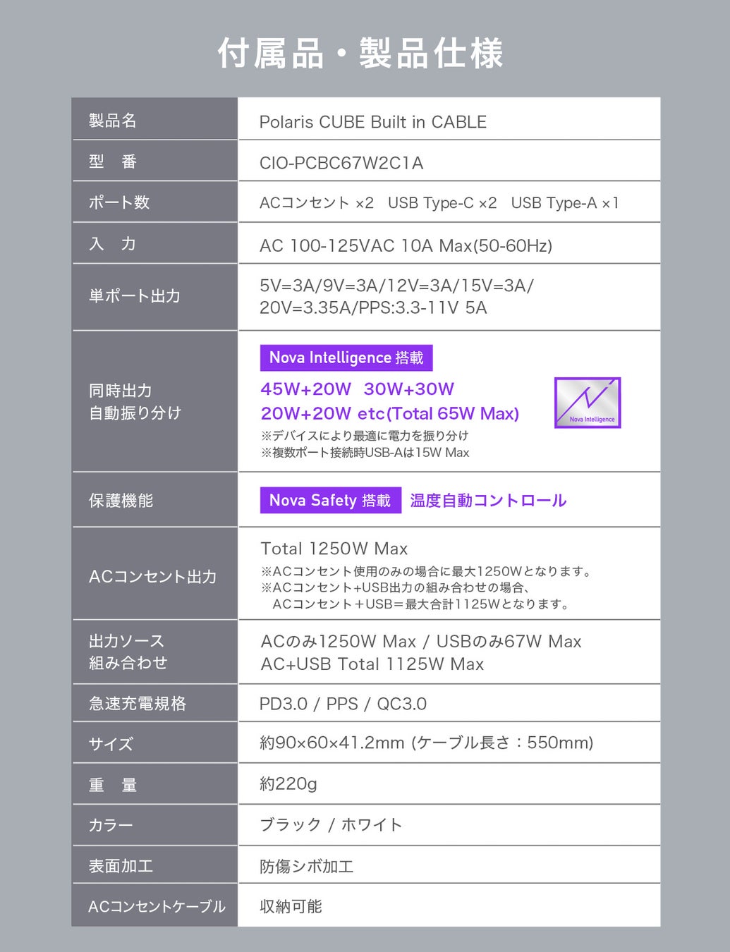 CIO独自の制御技術”Nova Intelligence”は接続されたデバイスに合わせた最適な電力を瞬時に判別。ポートの差込口によりデバイスを選ぶ必要がありません。