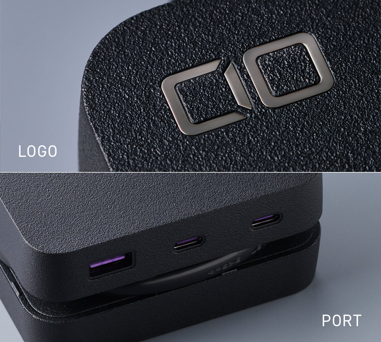 正面にはCIOのロゴをアルミプレートで配置し、ポート部分にはCIOのブランドカラーをアクセントにすることで、高級感を演出しました。