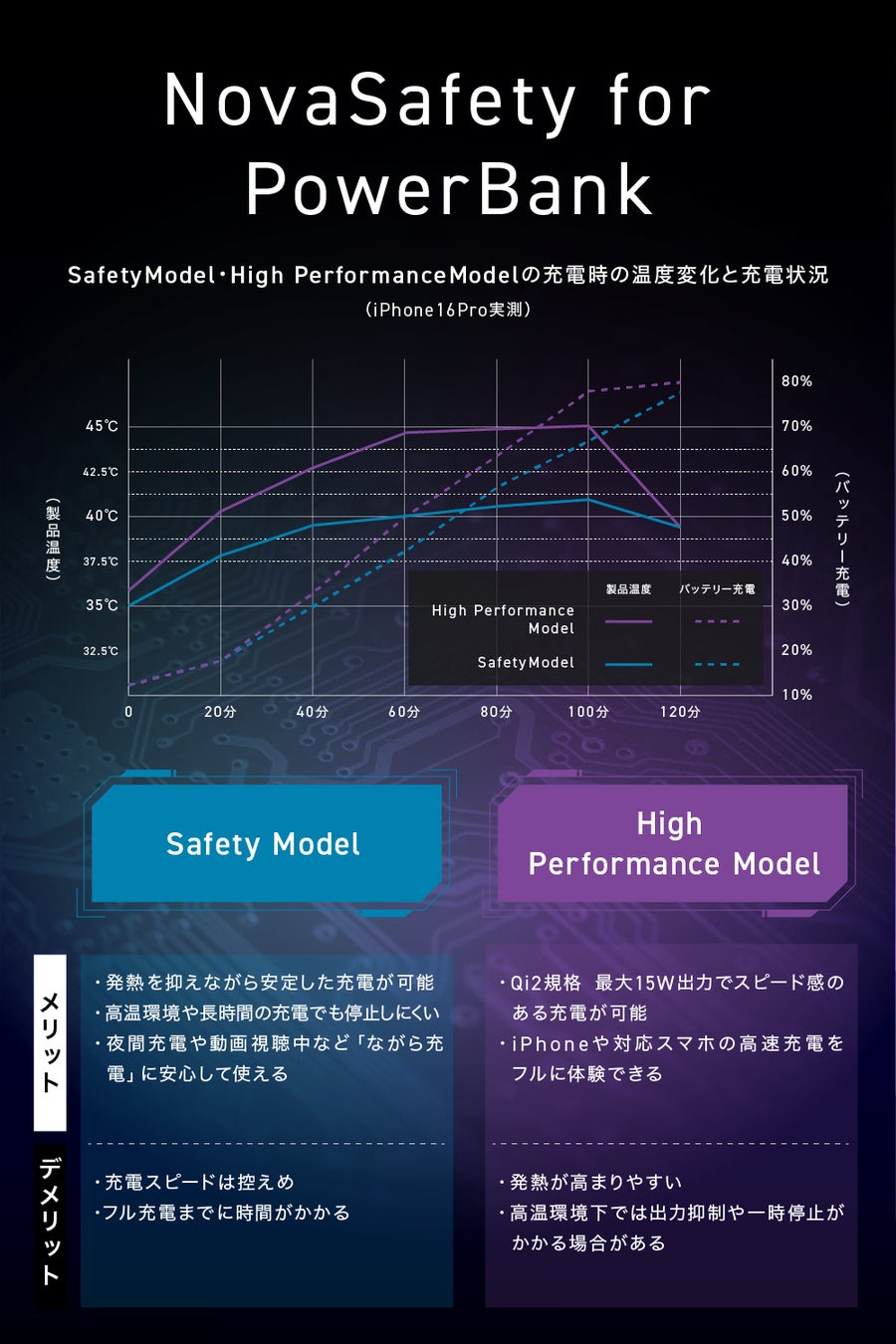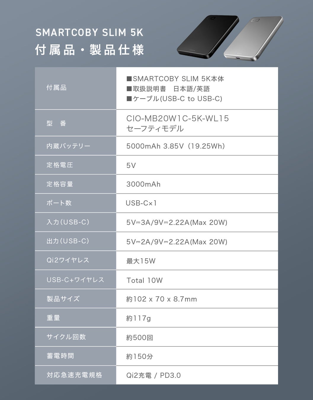 本製品「SMARTCOBY SLIM 5K」は 、「薄さ」「出力性能」「発熱温度」などが相互にトレードオフの関係にある中で、設計コンセプトに基づき開発しており、適切な安全基準を満たしております。