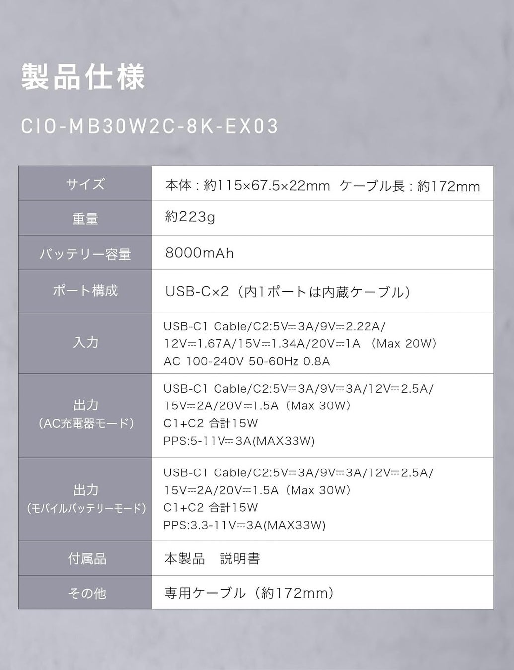 ・商品情報「SMARTCOBY Ex03 SLIM PLUG & CABLE」(CIO-MB30W2C-8K-EX03)