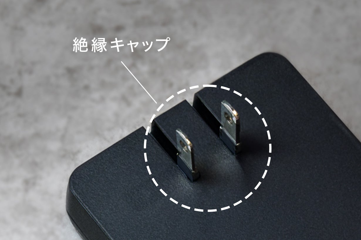 電源プラグの根元に絶縁キャップを採用することで、コンセントとプラグのすき間にほこりや水分が付くことで起こるトラッキング火災を抑制します。