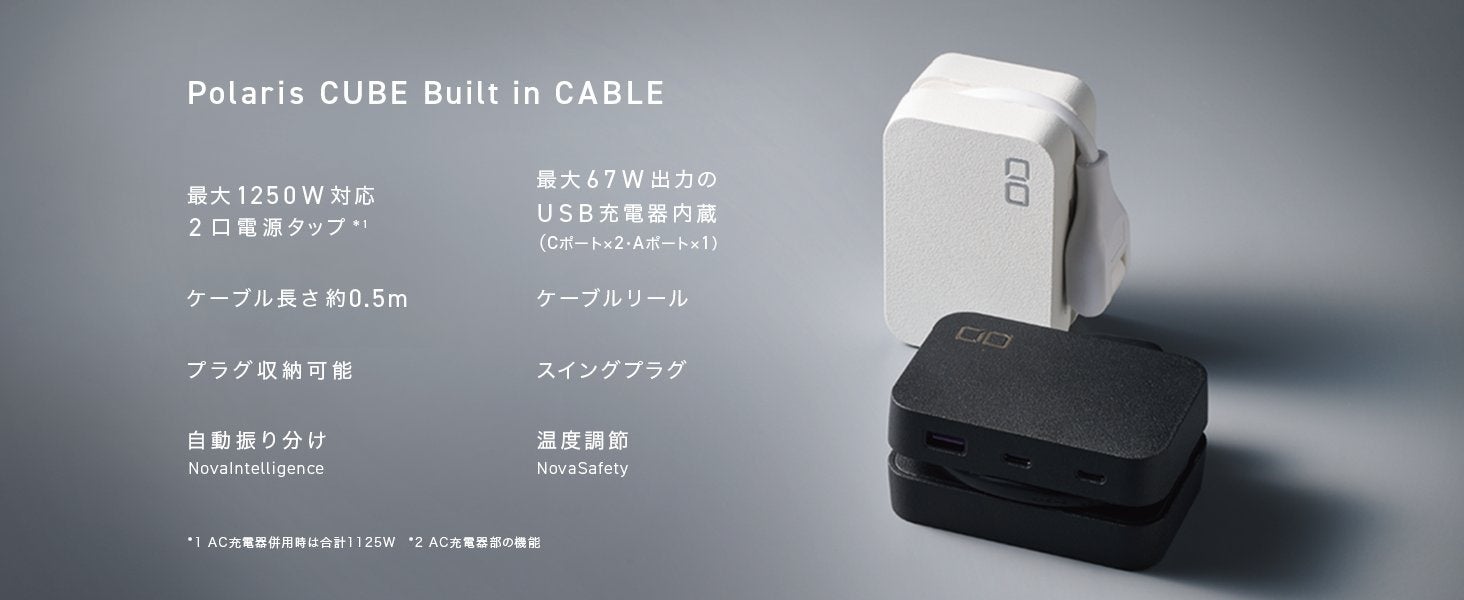 ◆持ち運びの新定番! USB付き電源タップ「Polaris CUBE Built in CABLE」