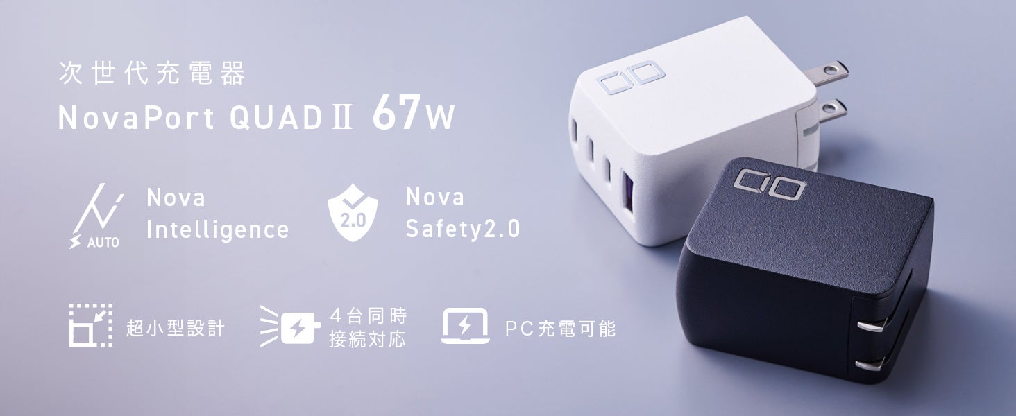 最大67W対応 4ポート搭載世界最小級(※2)充電器“NovaPort QUADⅡ 67W”