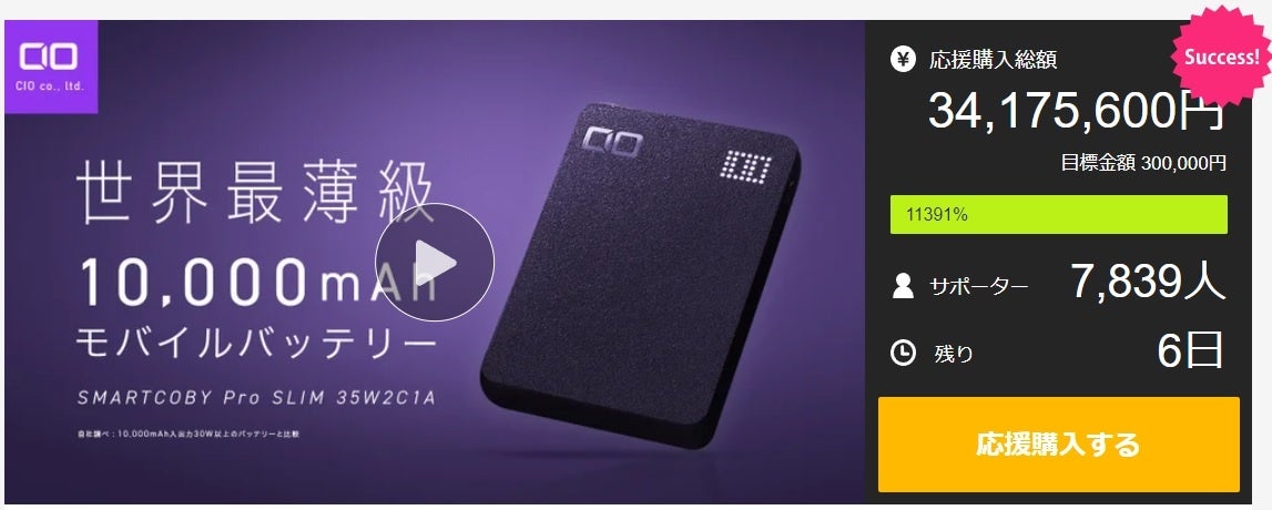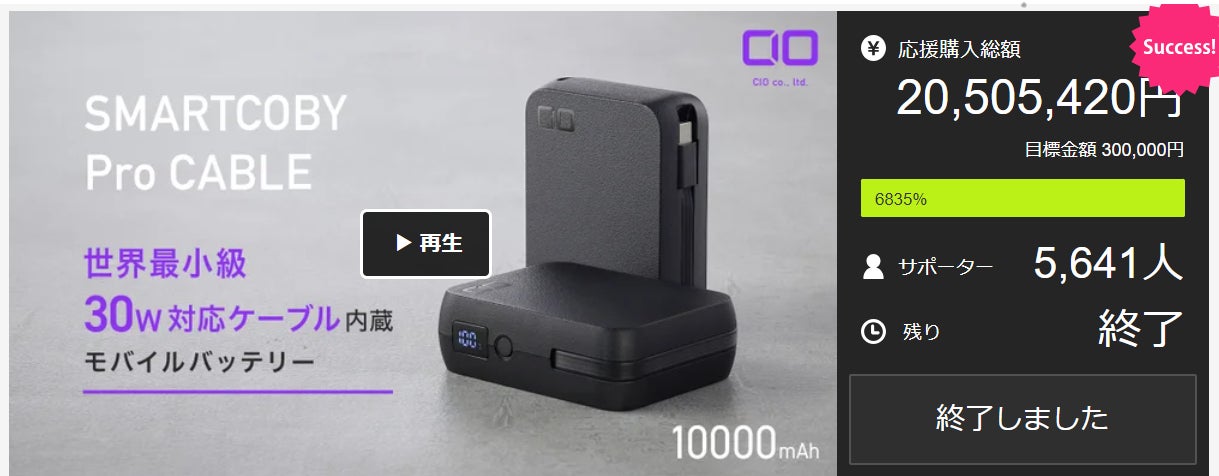 株式会社CIO(以下、CIO)は「多機能と最新テクノロジーでわくわくする未来をつくる」をコンセプトに、モバイルバッテリーや充電器を製造・販売しており、これまで数々の製品が応援購入サービス「Makuake」から誕生しました。