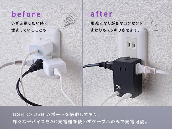 お使いの充電環境の中心で大活躍する拡張電源タップです。