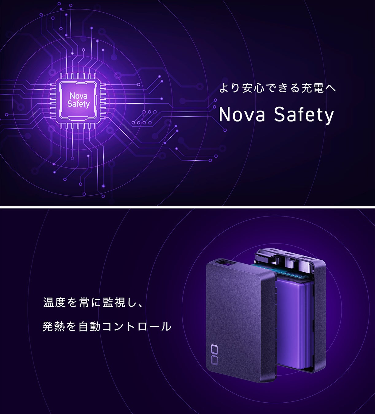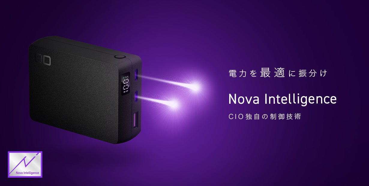 従来の複数ポート搭載のモバイルバッテリーの場合、ポートによって出力が固定化されたものが多く、ポートを挿し間違えると低速充電になったり、PCであれば充電出来なくなる事もありますが、このCIO独自技術『NovaIntelligence』は接続されたデバイスに合わせた最適な電力を瞬時に判別。ポートの差込口によりデバイスを選ぶ必要がありません。
