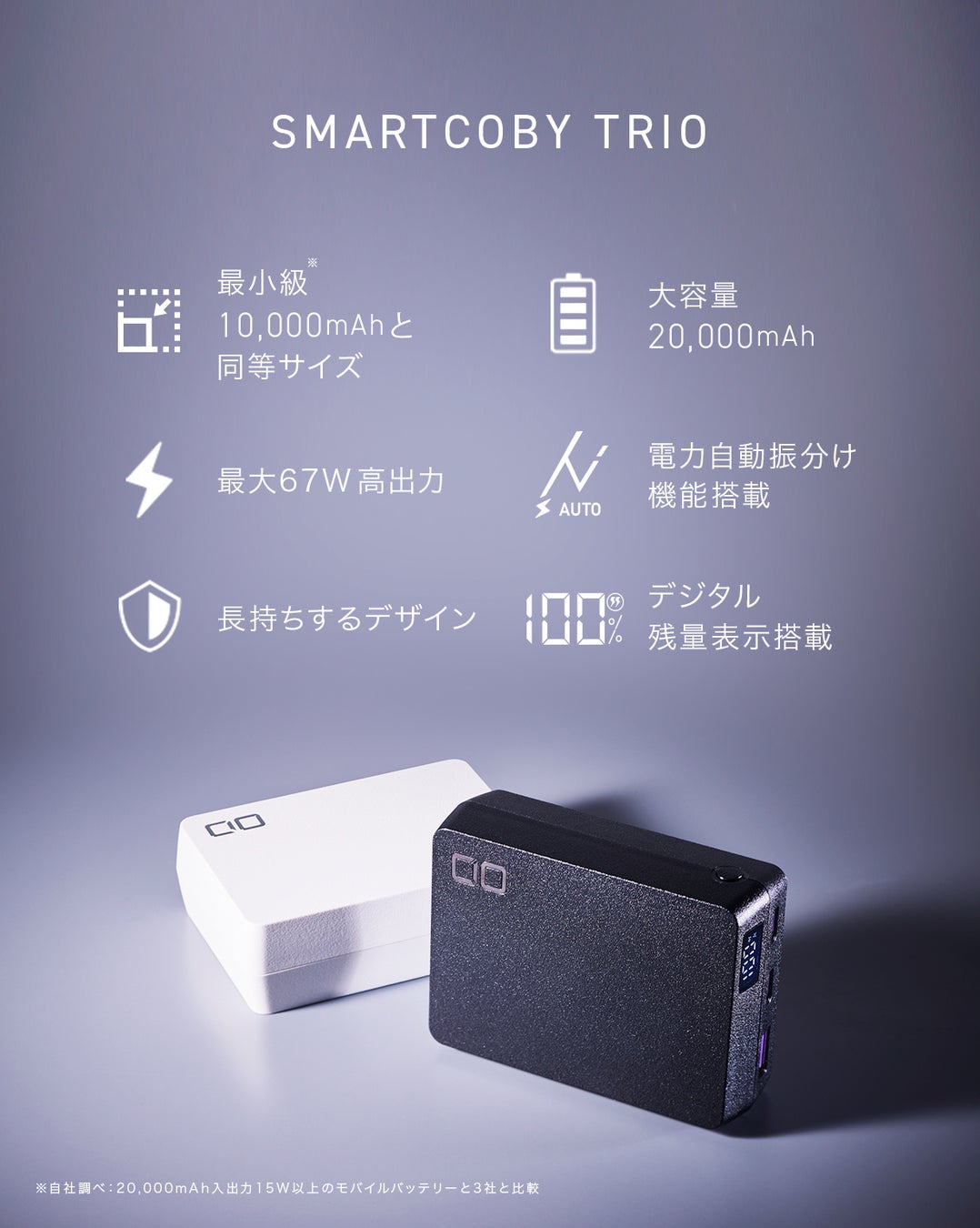 CIOのモバイルバッテリー SMARTCOBYシリーズに圧倒的なコンパクトさとパワフルさを兼ね備えた新作モバイルバッテリー『SMARTCOBY TRIO』が登場!