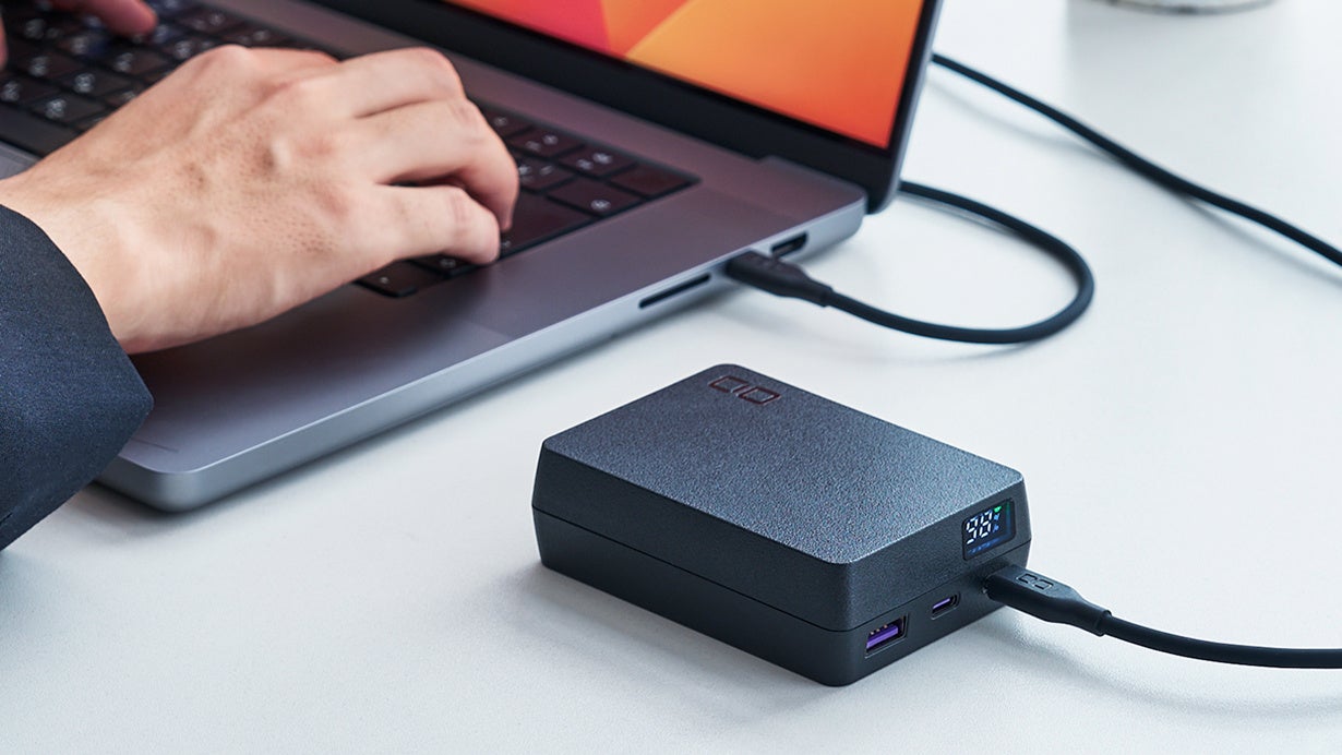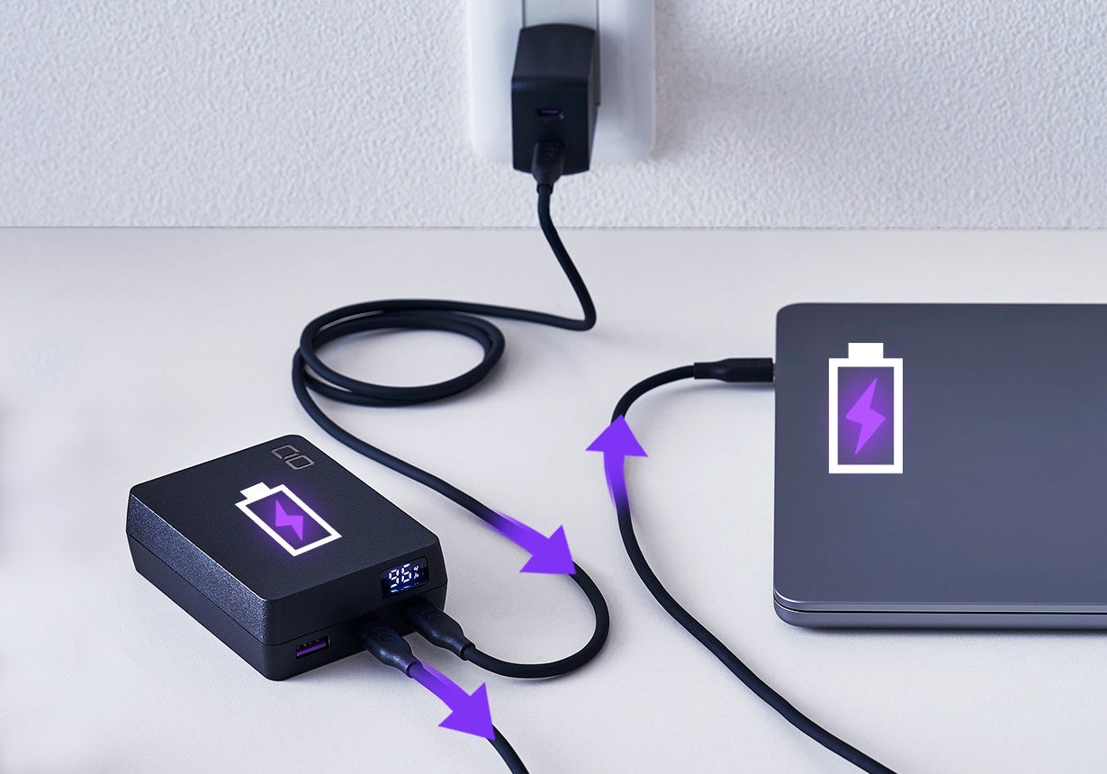 『SMARTCOBY TRIO』は急速パススルー機能搭載で、バッテリーに充電しながらノートPCなどへも最大速度で充電可能です。