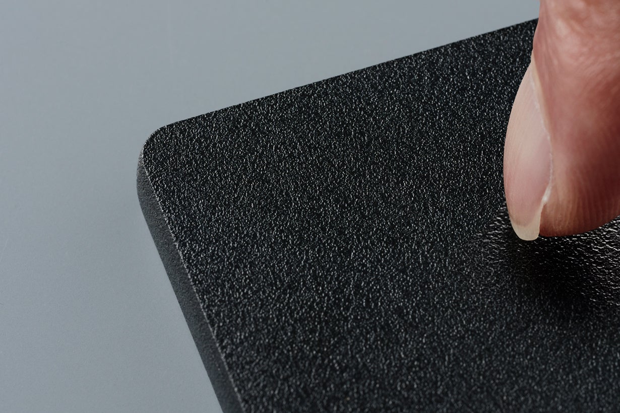 SMARTCOBY SLIMは、表面に一眼レフカメラのボディのような粗いシボ加工を施しています。