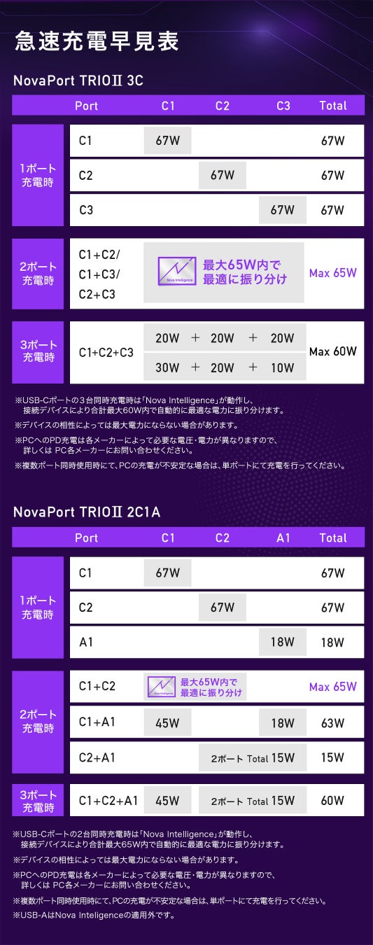 同時充電でも最適な割り振りを実現してくれる“Nova Intelligence”で、充電器を使う時もストレスなく快適に充電が可能です。