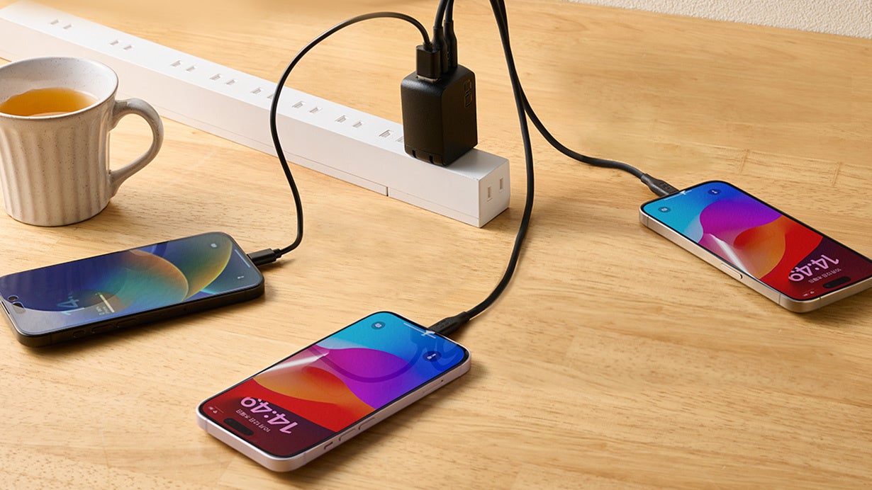 Type-Cポートを2つ、Aポートを1つ搭載したNovaPort TRIOⅡ 2C1Aは、3台同時充電時でも45W出力が可能(Cポート1つのみ)。