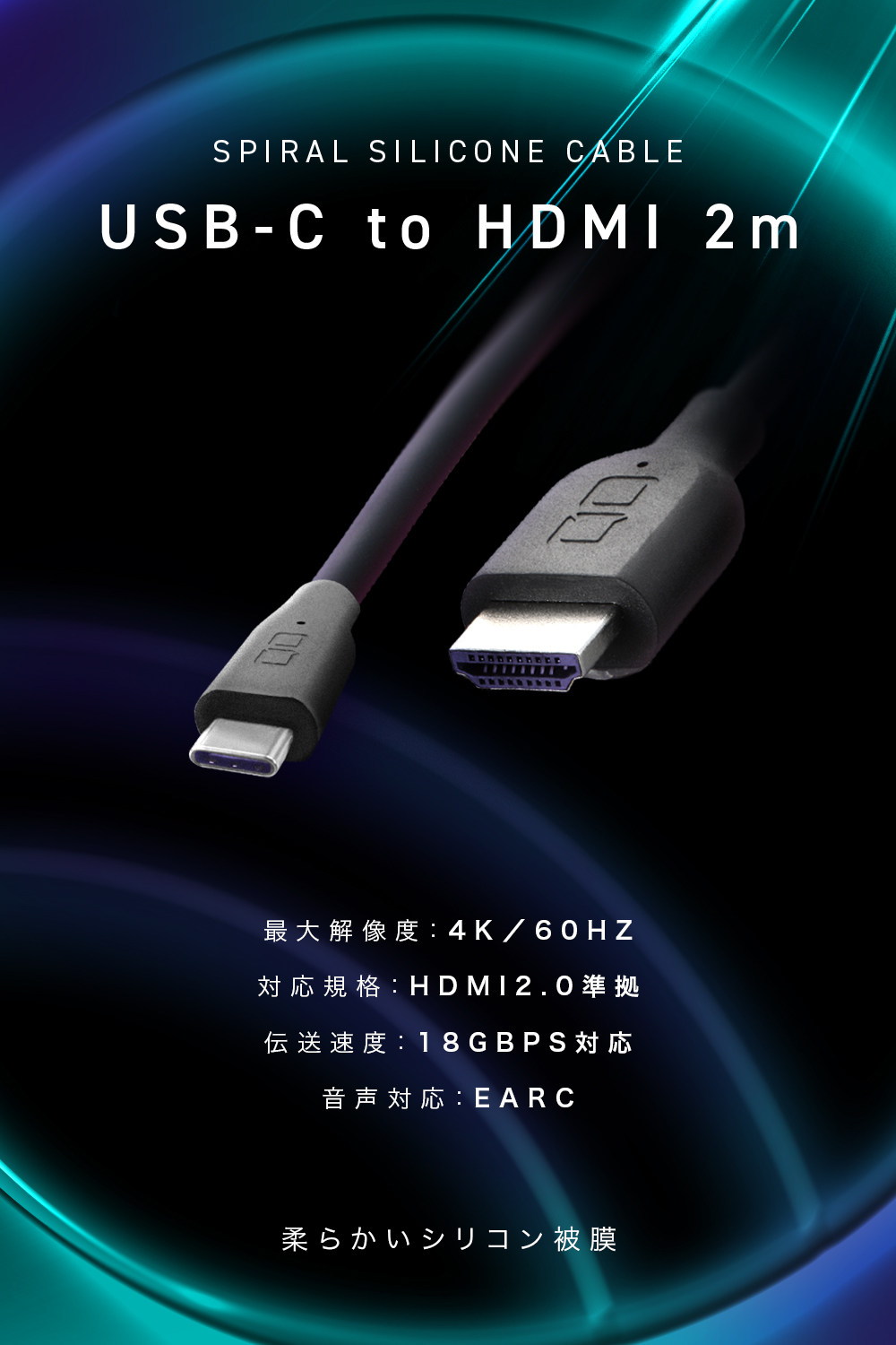 最大で4K60Hz(2K120Hz)の映像表示に対応します。また最大18Gbpsのデータ転送に対応しており、マルチチャンネルオーディオやHDRも使用可能。著作権保護信号を含む映像・音声伝達にも対応しています。HDMI端子を持つ機器同士をつなぐことで、4K放送やストリーミングビデオ、ゲームを楽しんだり、PCと繋いで作業やプレゼンテーションにお使いいただけます。