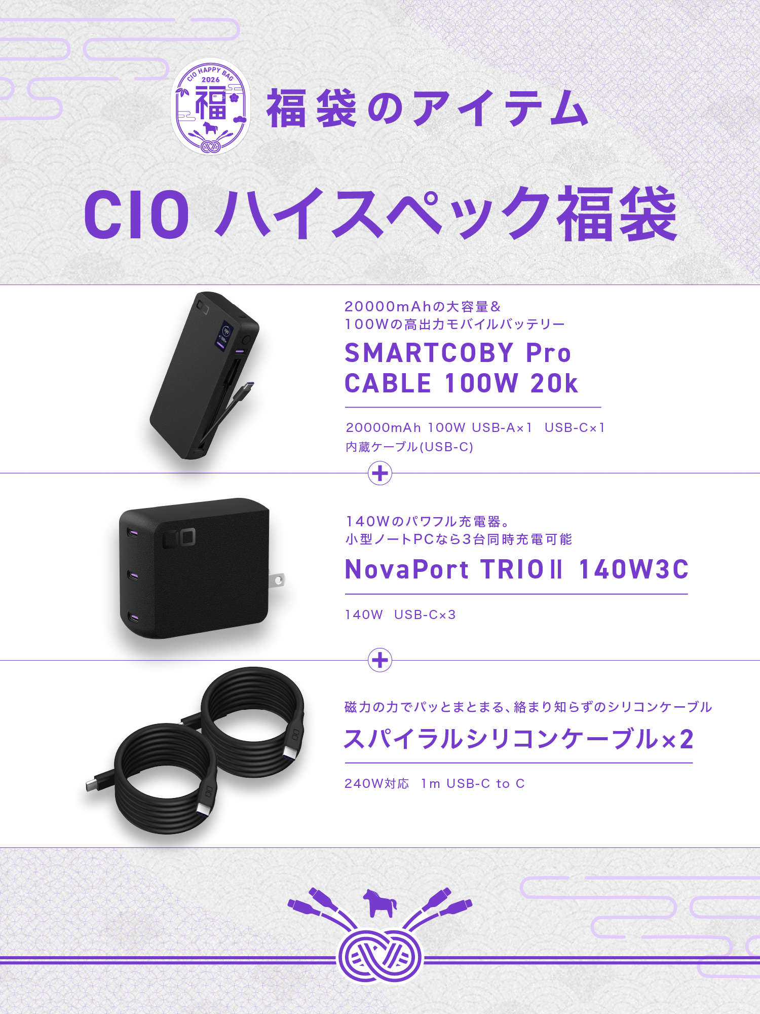 | 【セット商品内容】 | ■SMARTCOBY Pro CABLE 100W ▶︎詳しくはこちら ■NovaPort TRIOⅡ 140W3C ▶︎詳しくはこちら ■スパイラルシリコンケーブル CtoC 1m ▶︎詳しくはこちら |
