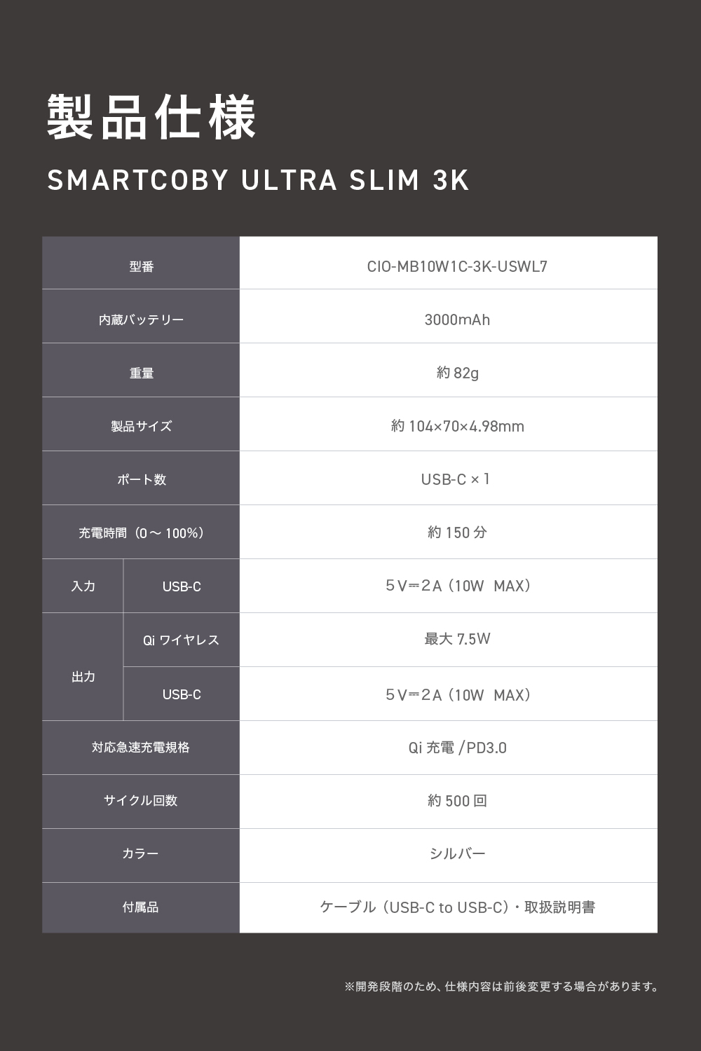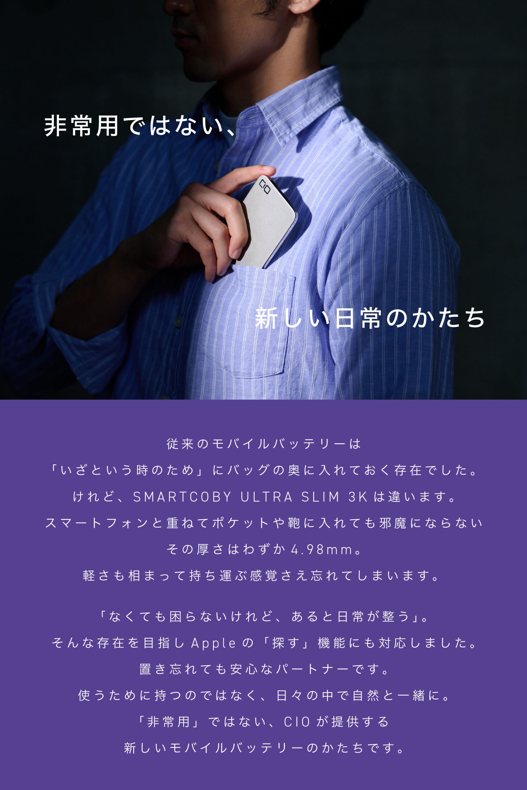 容量は3000mAh。大容量で重くなる方向ではなく、「ちょっと足りない(不安な)時がある」を軽く解決するためのちょうどいい容量です。