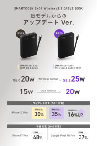 Information燃えにくい半固体系、Qi2.2ワイヤレス充電を搭載 脱着式USB-Cケーブル内蔵モバイルバッテリー「SMARTCOBY Ex04 Wireless2.2 CABLE SS5K」を販売開始
