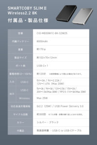 InformationQi2.2で最大25Wワイヤレス充電、8000mAhのモバイルバッテリー「SMARTCOBY SLIMⅡ Wireless2.2 8K」を販売開始